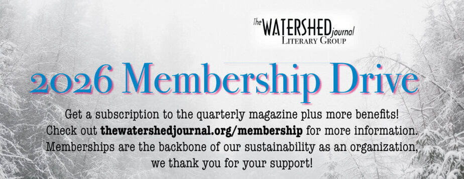 - 2026 Watershed Membership DriveThe 2026 Membership Drive is ON! The Watershed Journal Literary Group is excited to announce our 2026 Membership Drive is officially underway! As a grassroots, nonprofit literary organization proudly serving storytellers, writers, readers, and artists in the PA Wilds region and beyond, we’re reaching out to our community with open hearts and a simple request:… Read more: 2026 Watershed Membership Drive